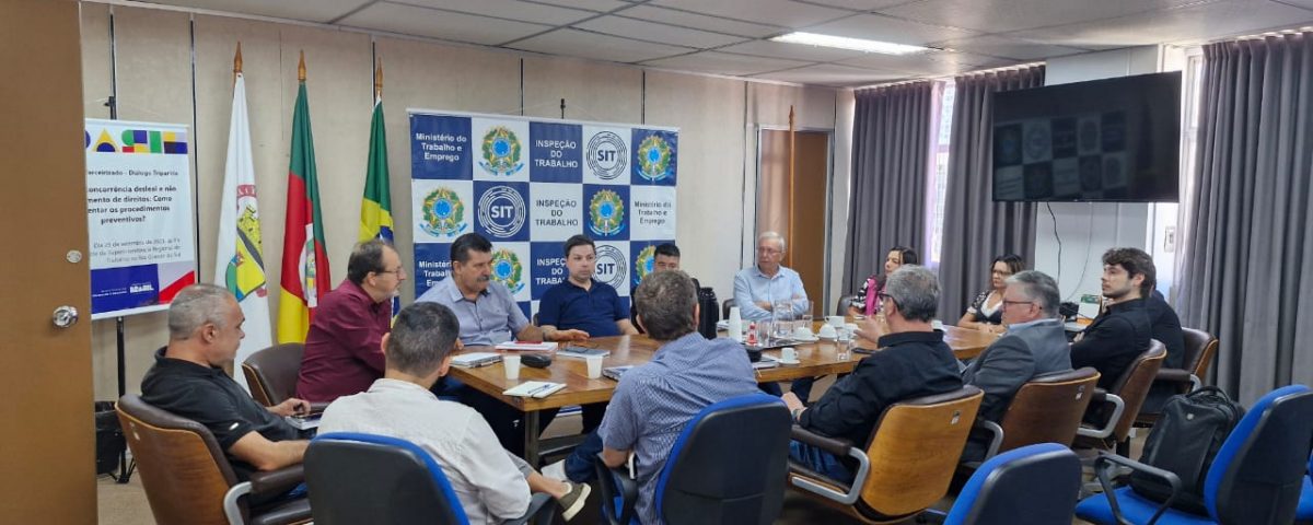 No dia 14 de março, o presidente da FETICVERGS, João Nadir Pires, esteve presente na Superintendência Regional do Trabalho no Rio Grande do Sul, em Porto Alegre, para uma reunião tripartite sobre contratação, capacitação de mão de obra e condições de trabalho na indústria calçadista. O encontro reuniu representantes dos trabalhadores, empregadores e governo, reforçando a importância do diálogo social para garantir melhores oportunidades e condições para a categoria.